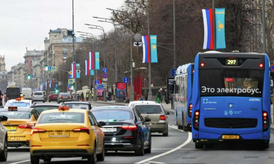Флаги России и Казахстана парами вывесили в Москве в преддверии государственного визита Президента РК Касым-Жомарта ...