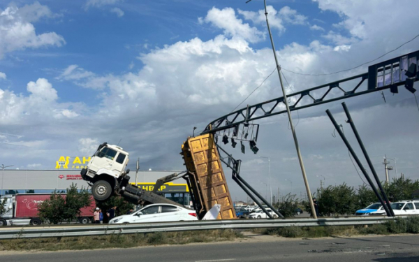 Грузовик чуть не снёс арку на трассе Актобе